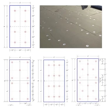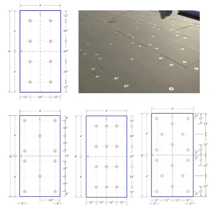 Below are common fastening patterns detailing 8, 10, 12 and 16 fasteners per board.
